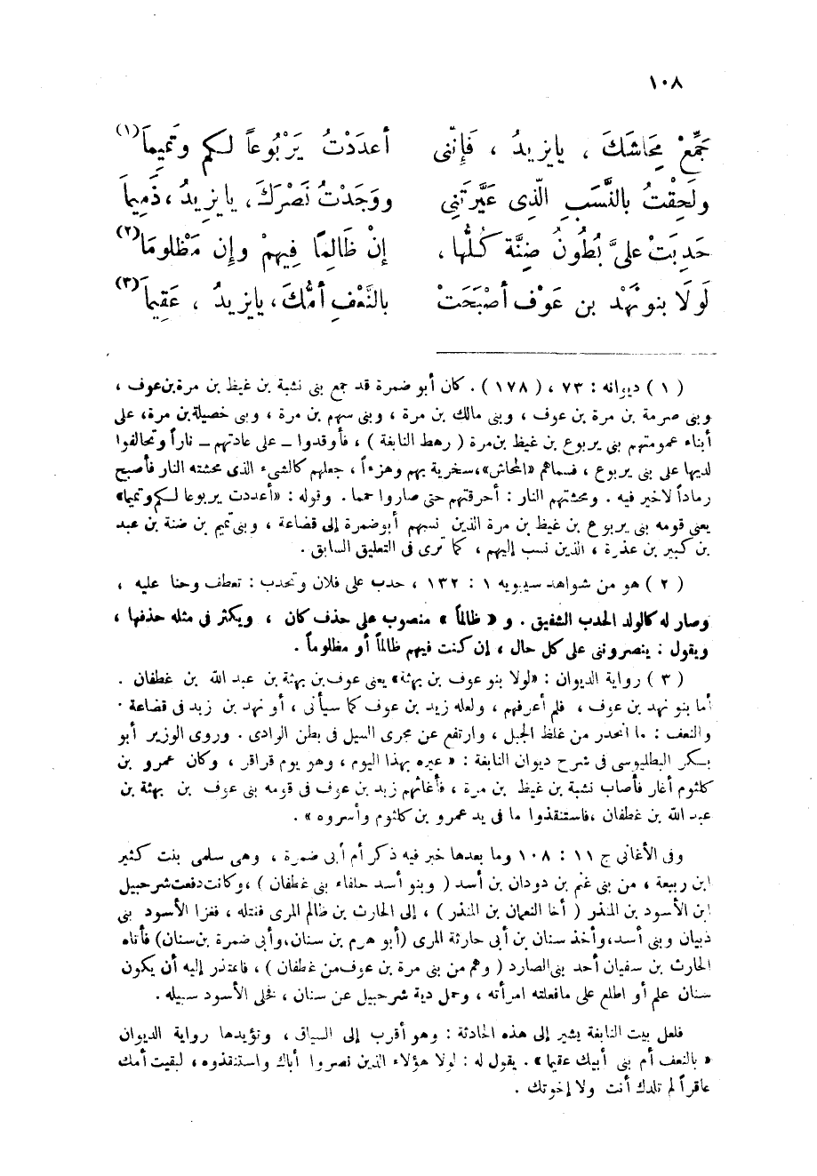(حدبت على بطُون ضنة كلهَا ... إِن ظَالِما فيهم وَإِن مَظْلُوما)