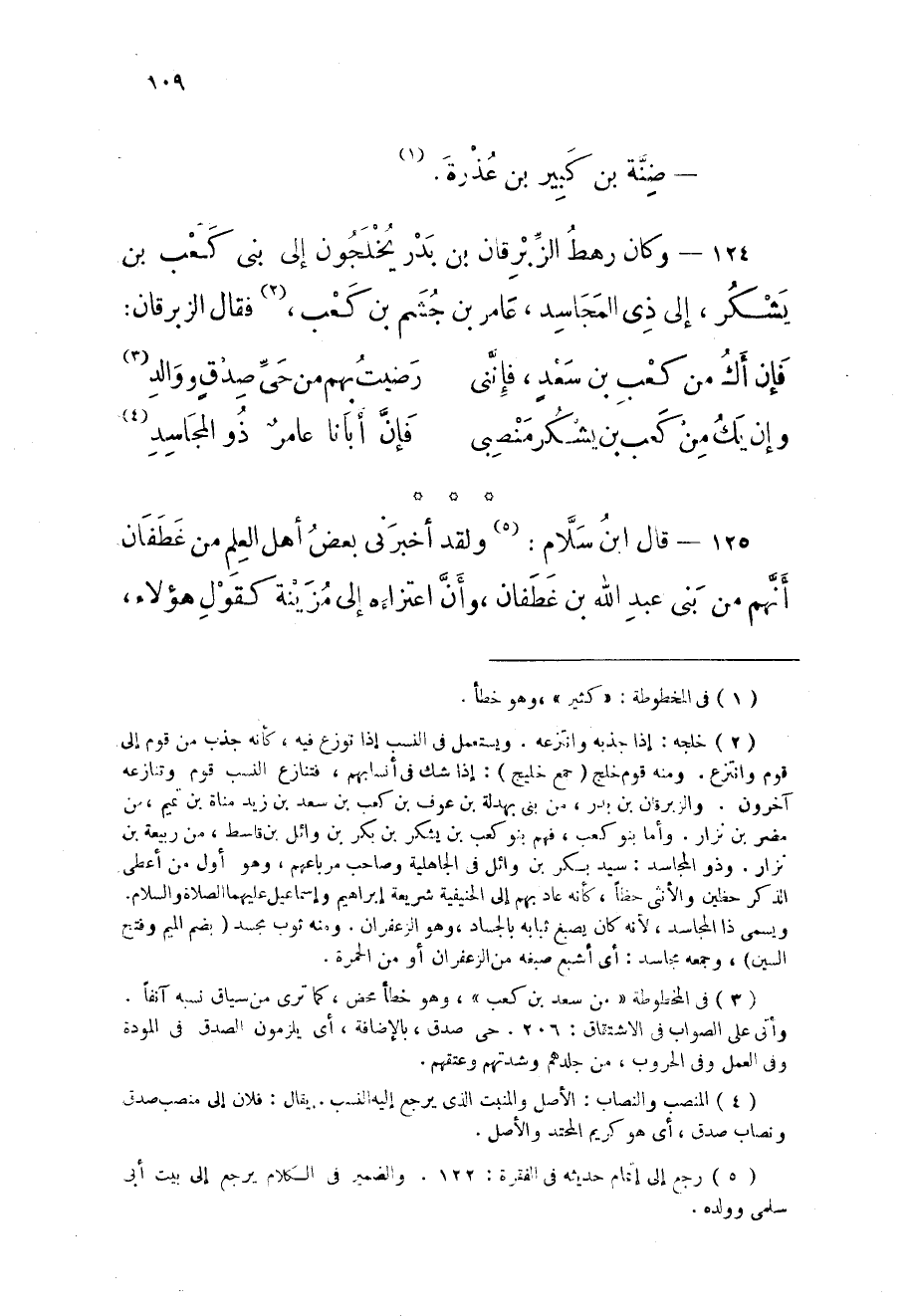 125 - قَالَ ابْن سَلام وَلَقَد أخبرنى بعض أهل الْعلم من غطفان أَنهم من بنى عبد الله بن غطفان وَأَن اعتزاءه إِلَى مزينة كَقَوْل هَؤُلَاءِ
