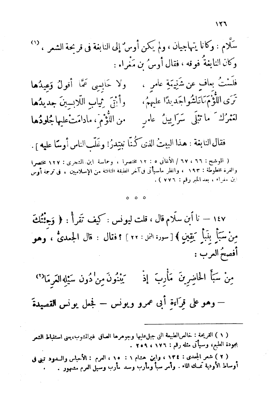 147 - نَا ابْن سَلام قَالَ قلت ليونس كَيفَ تقْرَأ {وجئتك من سبإ بنبإ يَقِين} فَقَالَ قَالَ الجعدى وَهُوَ أفْصح الْعَرَب