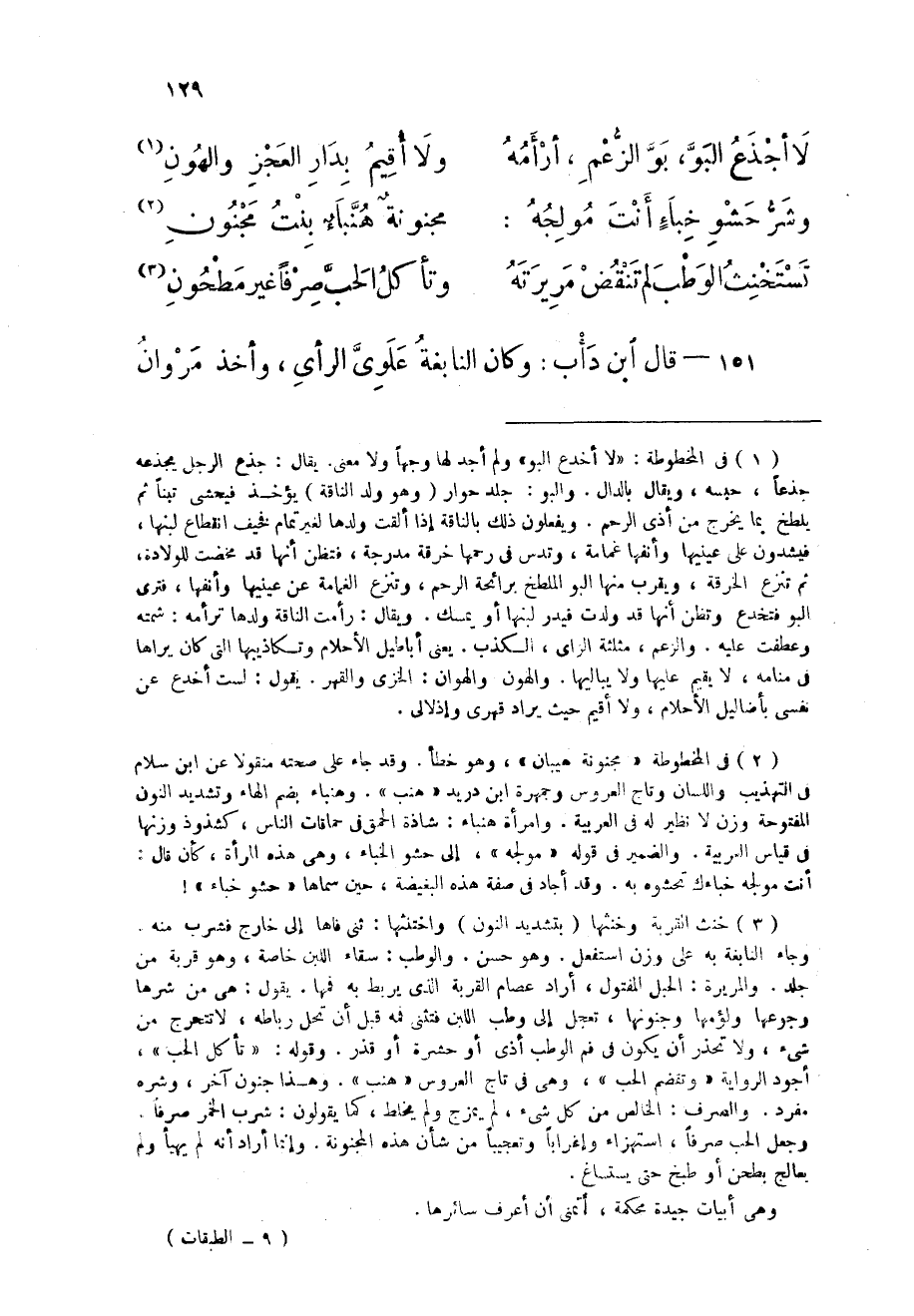 151 - قَالَ ابْن دأب وَكَانَ النَّابِغَة علوى الرأى وَأخذ مَرْوَان