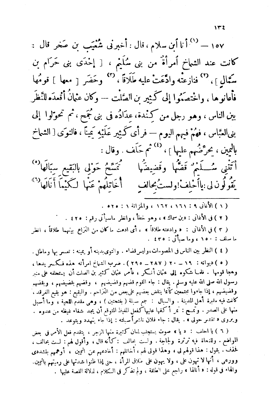 157 - أَنا ابْن سَلام قَالَ أخبرنى شُعَيْب بن صَخْر قَالَ كَانَت عِنْد الشماخ امْرَأَة من بنى سليم إِحْدَى بنى حرَام بن سمال فنازعته وَادعت عَلَيْهِ طَلَاقا وَحضر مَعهَا قَومهَا فأعانوها واختصموا إِلَى كثير بن الصَّلْت وَكَانَ عُثْمَان أقعده للنَّظَر بَين النَّاس وَهُوَ رجل من كِنْدَة عداده فى بنى جمح ثمَّ تحولوا إِلَى بنى الْعَبَّاس فهم فيهم الْيَوْم فَرَأى كثير عَلَيْهِ يَمِينا فالتوى الشماخ بِالْيَمِينِ يحرضهم عَلَيْهَا ثمَّ حلف