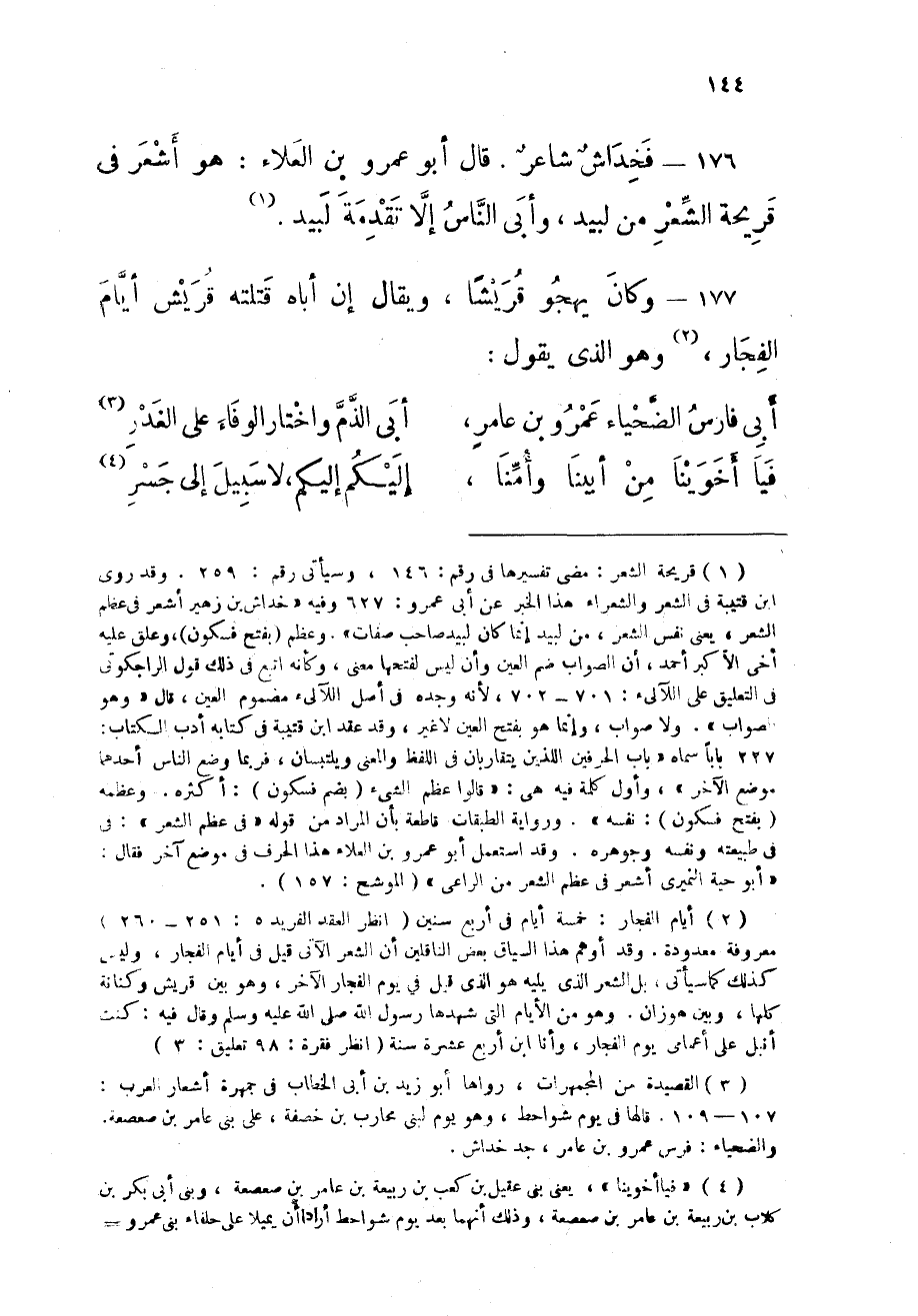 (أَبى فَارس الضحياء عَمْرو بن عَامر ... أَبى الذَّم وَاخْتَارَ الْوَفَاء على الْغدر)