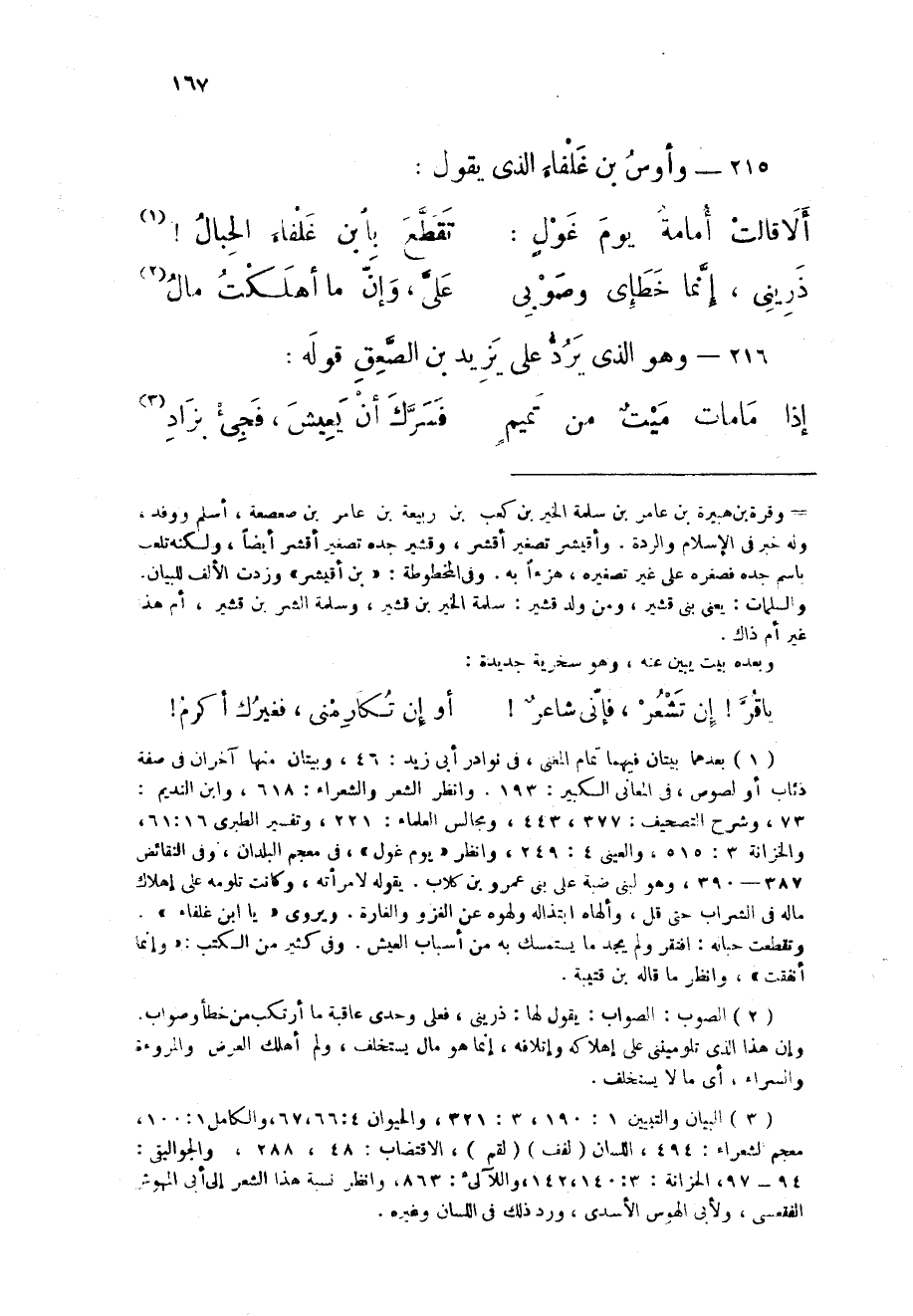 216 - وَهُوَ الذى يرد على يزِيد بن الصَّعق قَوْله