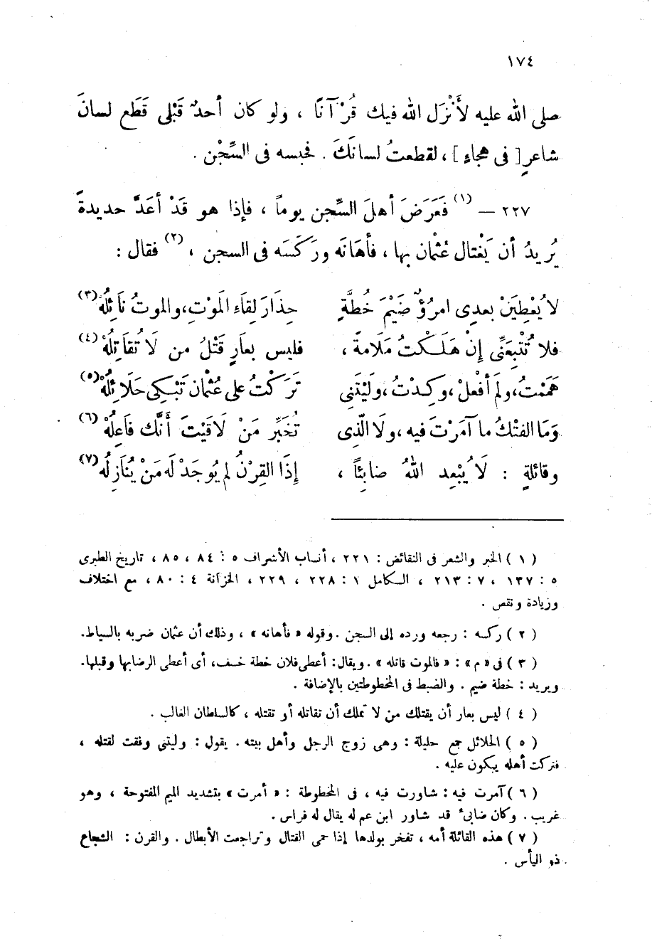 227 - فَعرض أهل السجْن يَوْمًا فَإِذا هُوَ قد أعد حَدِيدَة يُرِيد أَن يغتال عُثْمَان بهَا فأهانه وركسه فى السجْن فَقَالَ