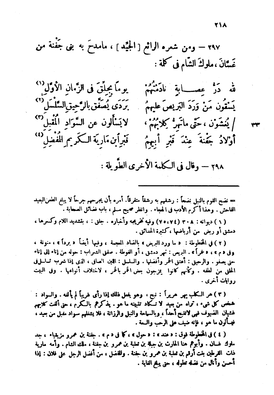 297 - وَمن شعره الرائع الْجيد مَا مدح بِهِ بنى جَفْنَة من غَسَّان مُلُوك الشَّام فى كلمة