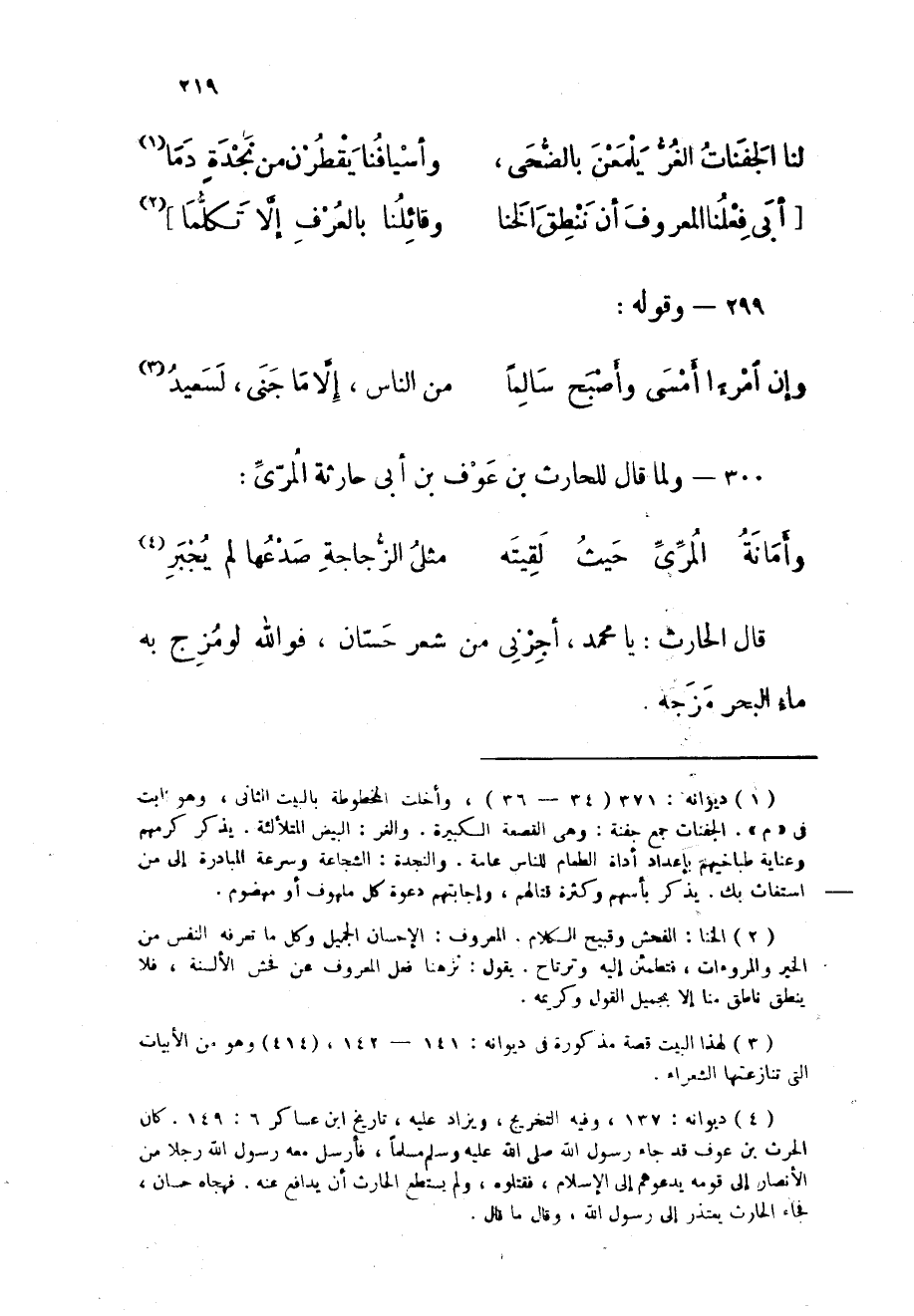 300 - وَلما قَالَ لِلْحَارِثِ بن عَوْف بن أَبى حَارِثَة المرى