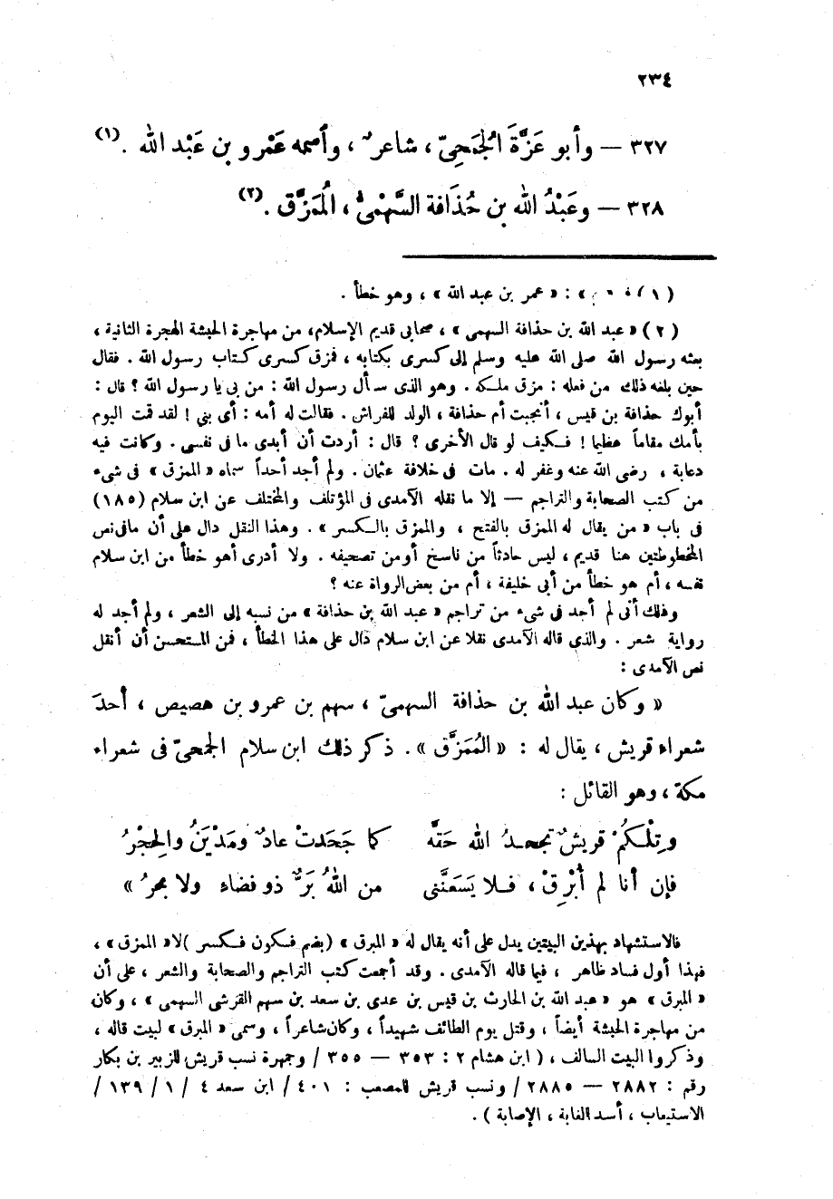 327 - وَأَبُو عزة الجمحى شَاعِر واسْمه عَمْرو بن عبد الله