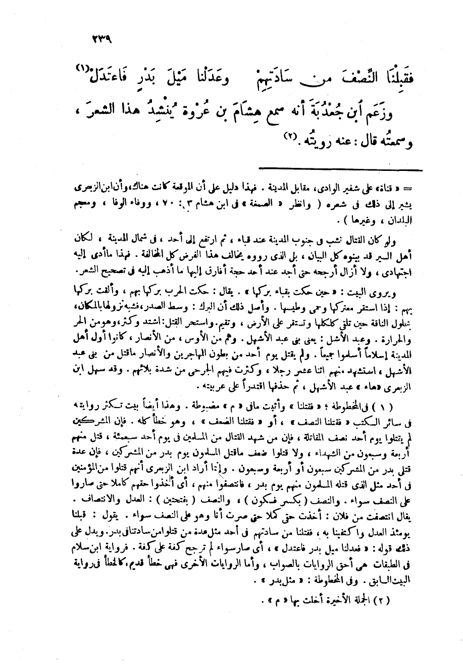 (فَقبلنَا النّصْف من سادتهم ... وعدلنا ميل بدر فاعتدل)
