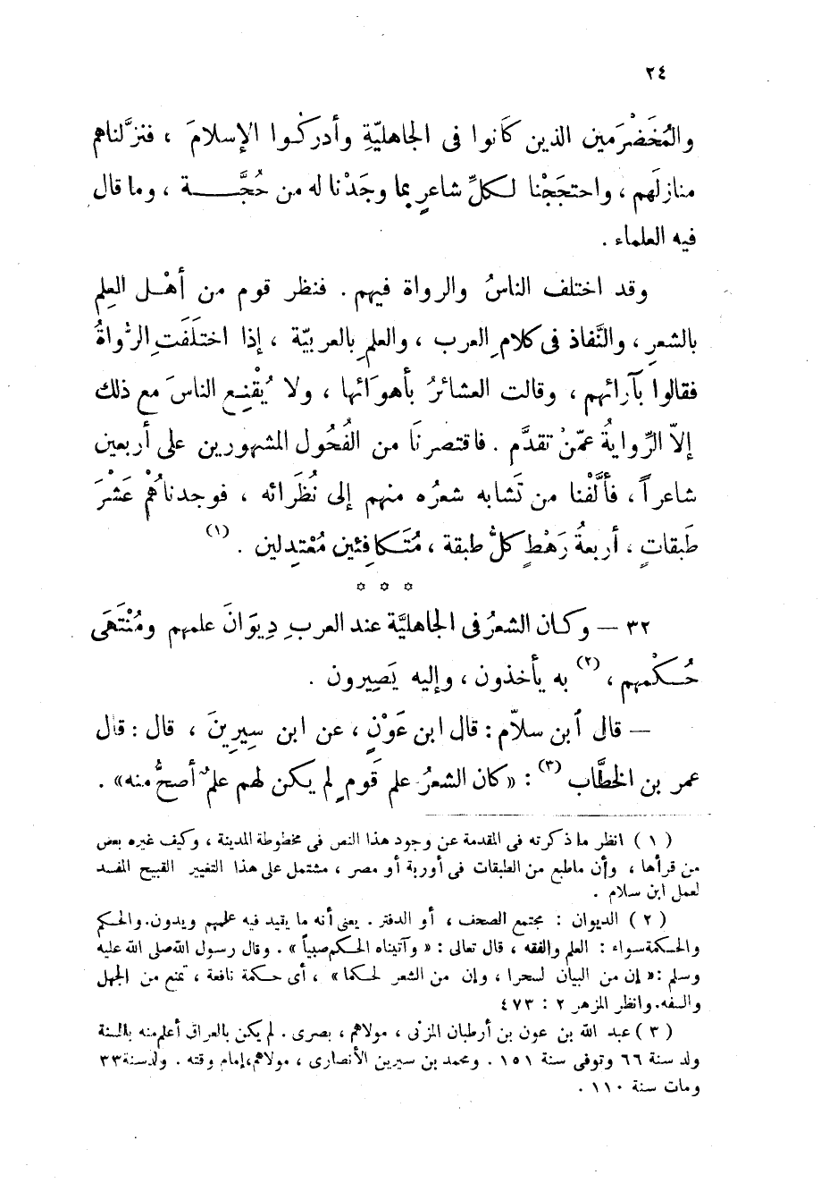 فَنظر قوم من أهل الْعلم بالشعر والنفاذ فى كَلَام الْعَرَب وَالْعلم بِالْعَرَبِيَّةِ إِذا اخْتلفت الروَاة فَقَالُوا بآرائهم وَقَالَت العشائر بأهوائها وَلَا يقنع النَّاس مَعَ ذَلِك إِلَّا الرِّوَايَة عَمَّن تقدم