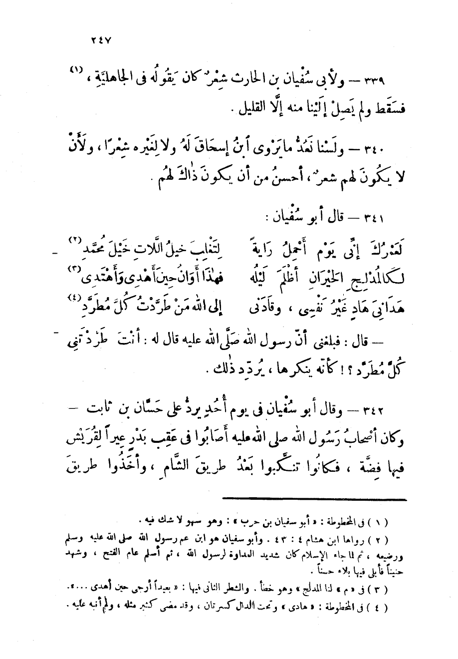 340 - ولسنا نعد مَا يرْوى ابْن اسحاق لَهُ وَلَا لغيره شعرًا وَلِأَن لَا يكون لَهُم شعر أحسن من أَن يكون ذَاك لَهُم