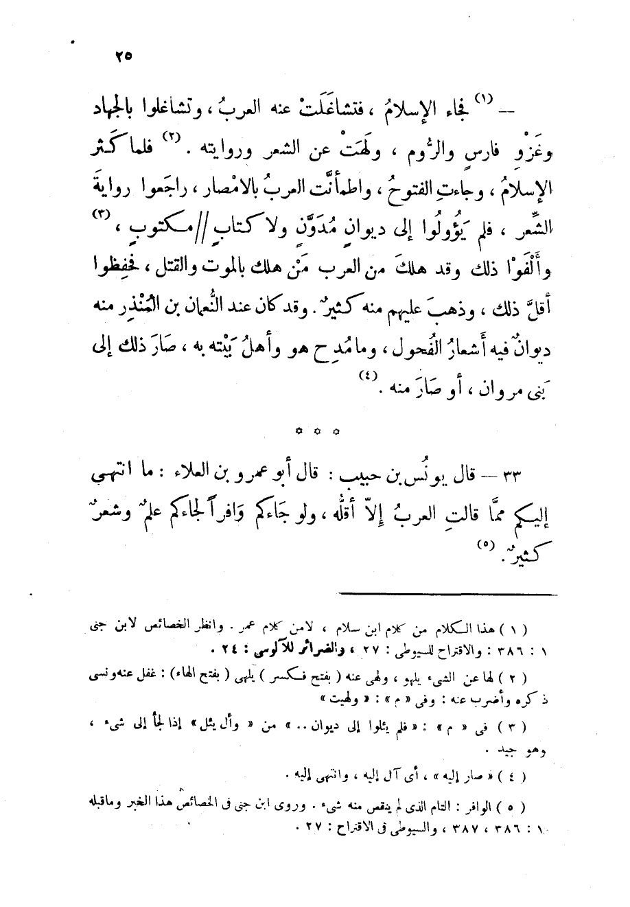 33 - قَالَ يُونُس بن حبيب قَالَ أَبُو عَمْرو بن الْعَلَاء مَا انْتهى إِلَيْكُم مِمَّا قَالَت الْعَرَب إِلَّا أَقَله وَلَو جَاءَكُم وافرا لجاءكم علم وَشعر كثير