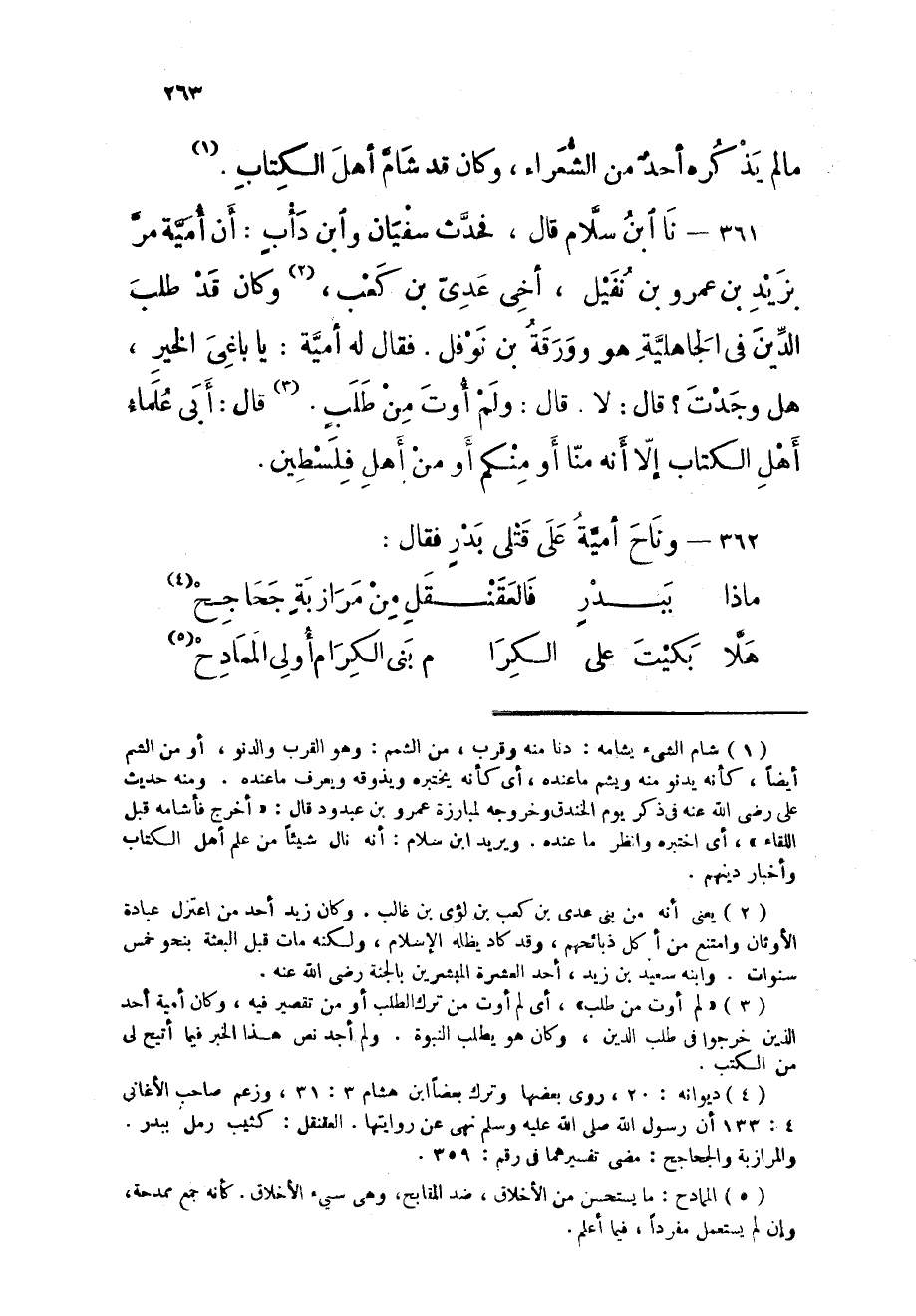 361 - نَا ابْن سَلام قَالَ فَحدث سُفْيَان وَابْن دأب أَن أُميَّة مر بزيد بن عَمْرو بن نفَيْل أخى عدى بن كَعْب وَكَانَ قد طلب الدّين فى الْجَاهِلِيَّة هُوَ وورقة بن نَوْفَل