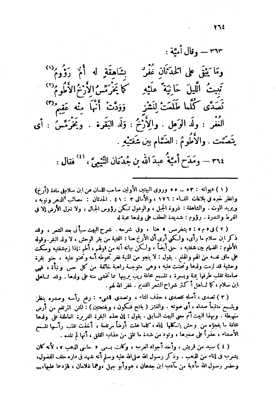 364 - ومدح أُميَّة عبد الله بن جدعَان التيمى فَقَالَ
