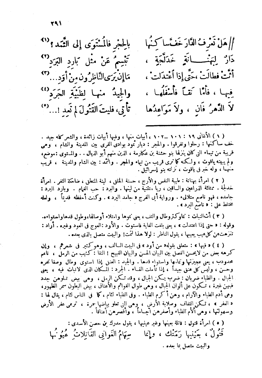 (هَل تعرف الدَّار خف ساكنها ... بِالْحجرِ فالمستوى إِلَى الثمد)