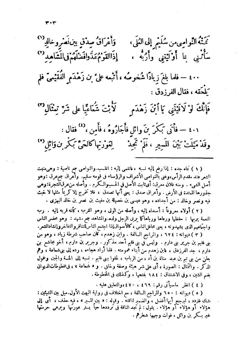 400 - فَلَمَّا بلغ زيادا شخوصه أتبعه عَليّ بن زَهْدَم الفقيمى فَلم يلْحقهُ فَقَالَ الفرزدق
