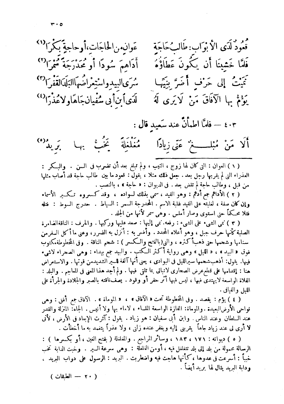 (قعُود لَدَى الْأَبْوَاب طَالب حَاجَة ... عوان من الْحَاجَات أوحاجة بكرا)