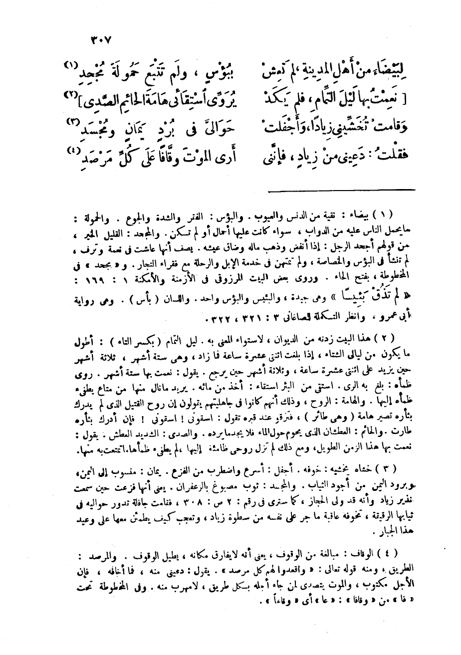 (لبيضاء من أهل الْمَدِينَة لم تعش ... ببؤس وَلم تتبع حمولة مجحد)