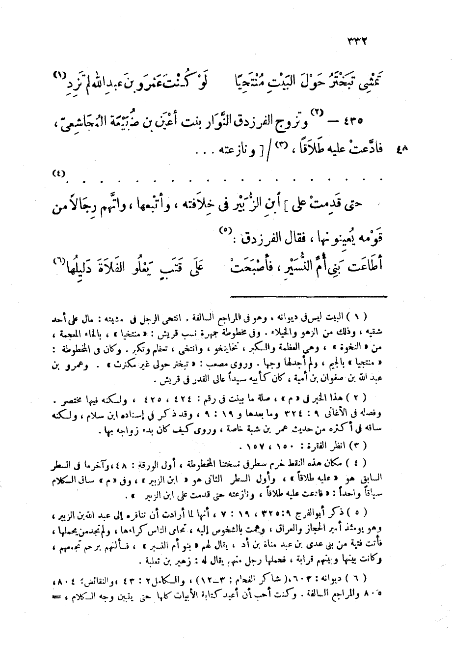 435 - وَتزَوج الفرزدق النوار بنت أعين بن ضبيعة الْمُجَاشِعِي فادعت عَلَيْهِ طَلَاقا ونازعته