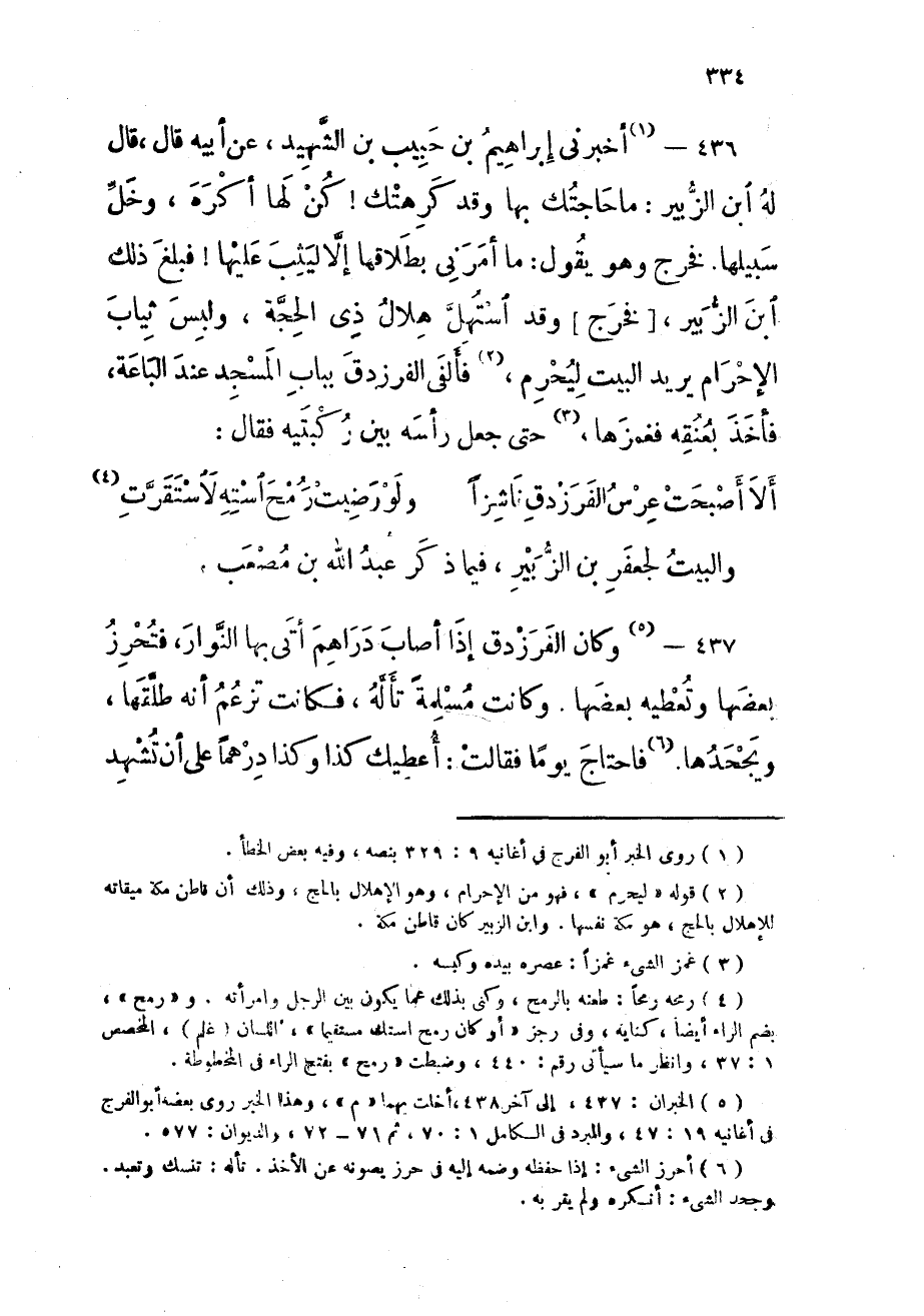 437 - وَكَانَ الفرزدق إِذا أصَاب دَرَاهِم أَتَى بهَا النوار فتحرز بَعْضهَا وتعطيه بَعْضهَا وَكَانَت مسلمة تأله فَكَانَت تزْعم أَنه طَلقهَا ويجحدها فَاحْتَاجَ يَوْمًا فَقَالَت أُعْطِيك كَذَا وَكَذَا درهما على أَن تشهد