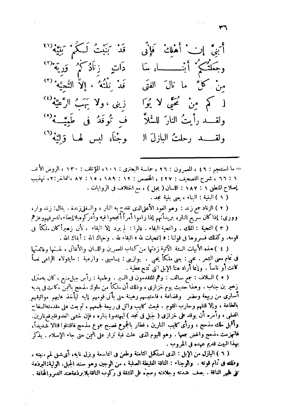 (أبنى إِن أهلك فإنى ... قد بنيت لكم بنيه)