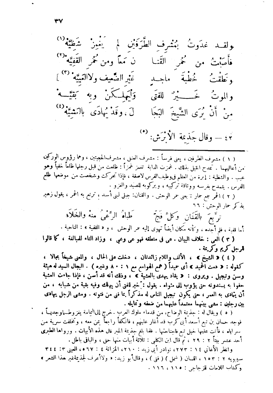 (وَلَقَد غَدَوْت بمشرف الطَّرفَيْنِ لم يغمز شظيه ... )