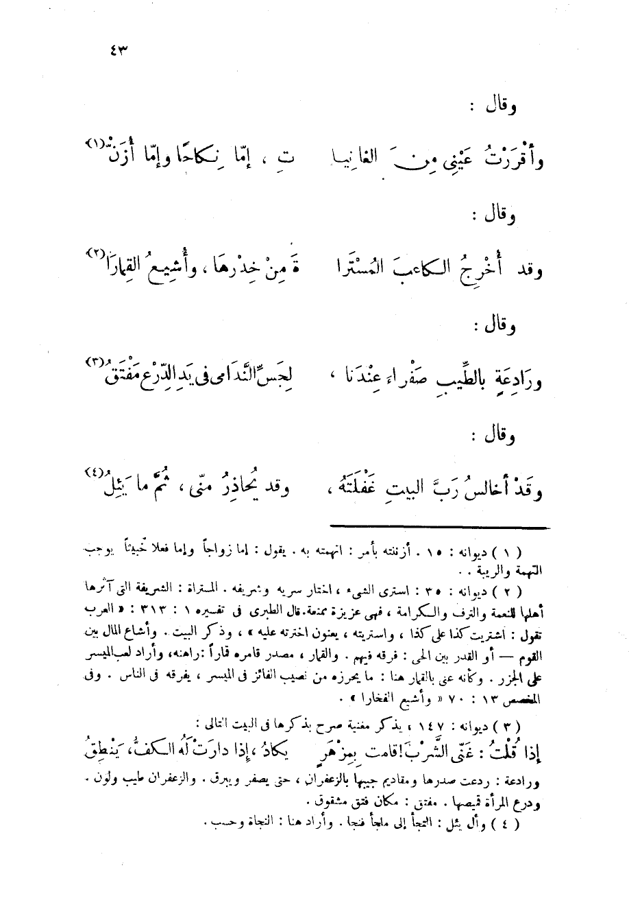 (وأقررت عينى من العانيات ... إِمَّا نِكَاحا وَإِمَّا أزن)