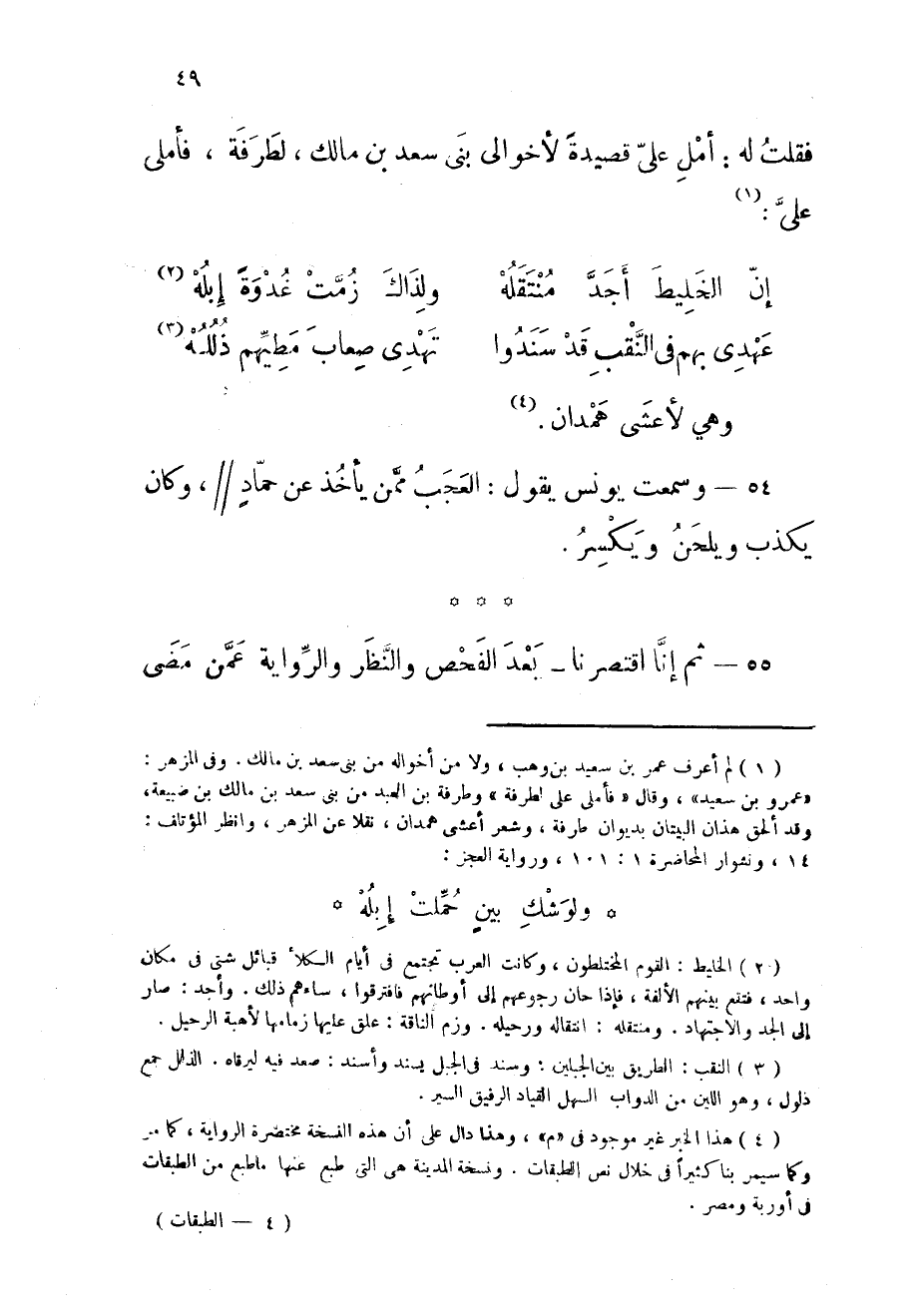 فَقلت لَهُ أمل على قصيدة لأخوالى بنى سعد بن مَالك لطرفة فأملى على