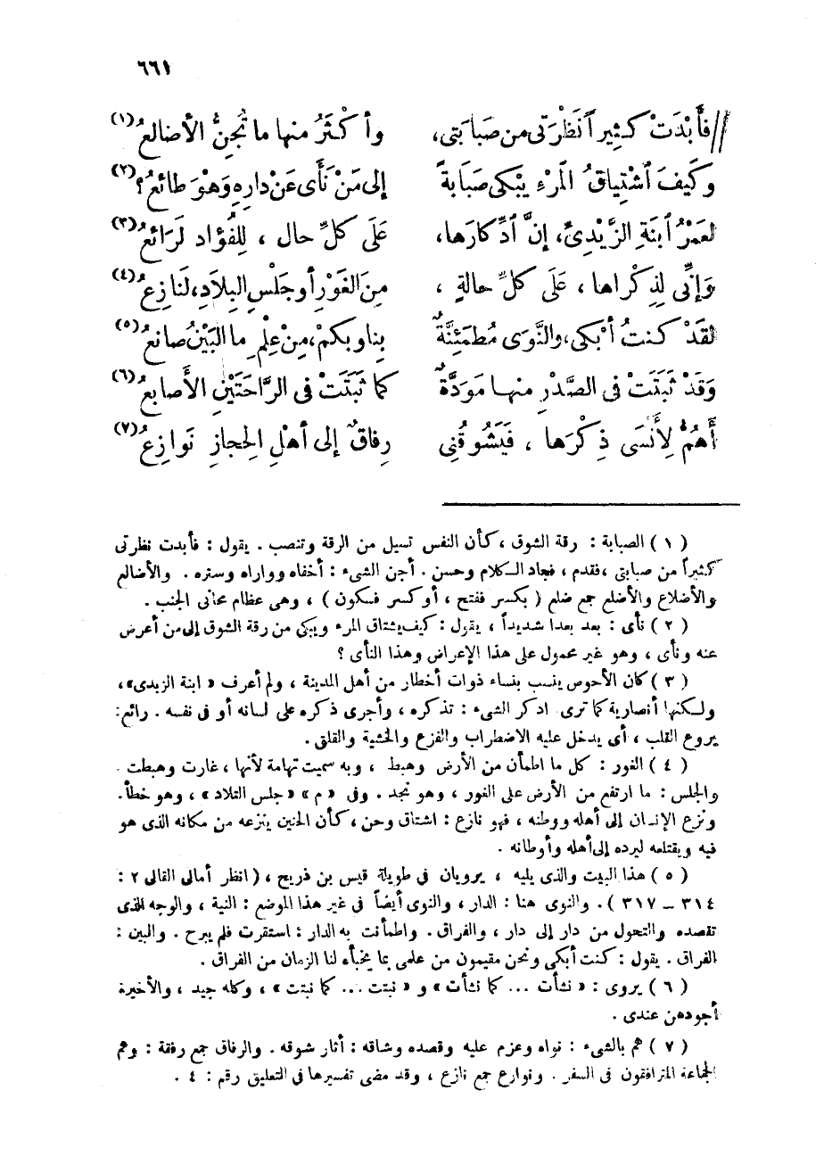 (وَكَيف اشتياق الْمَرْء يبكى صبَابَة ... إِلَى من نأى عَن دَاره وَهُوَ طائع)