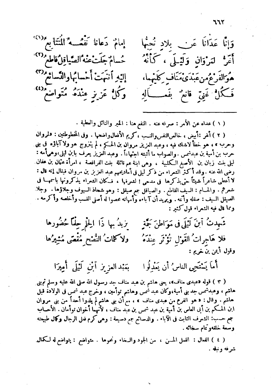 (هُوَ الْفَرْع من عبدى منَاف كليهمَا ... إِلَيْهِ انْتَهَت أحسابها والدسائع)