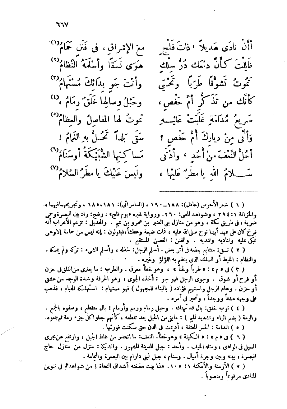 (أأن نَادَى هديلا ذَات فلج ... مَعَ الْإِشْرَاق فِي فنن حمام)