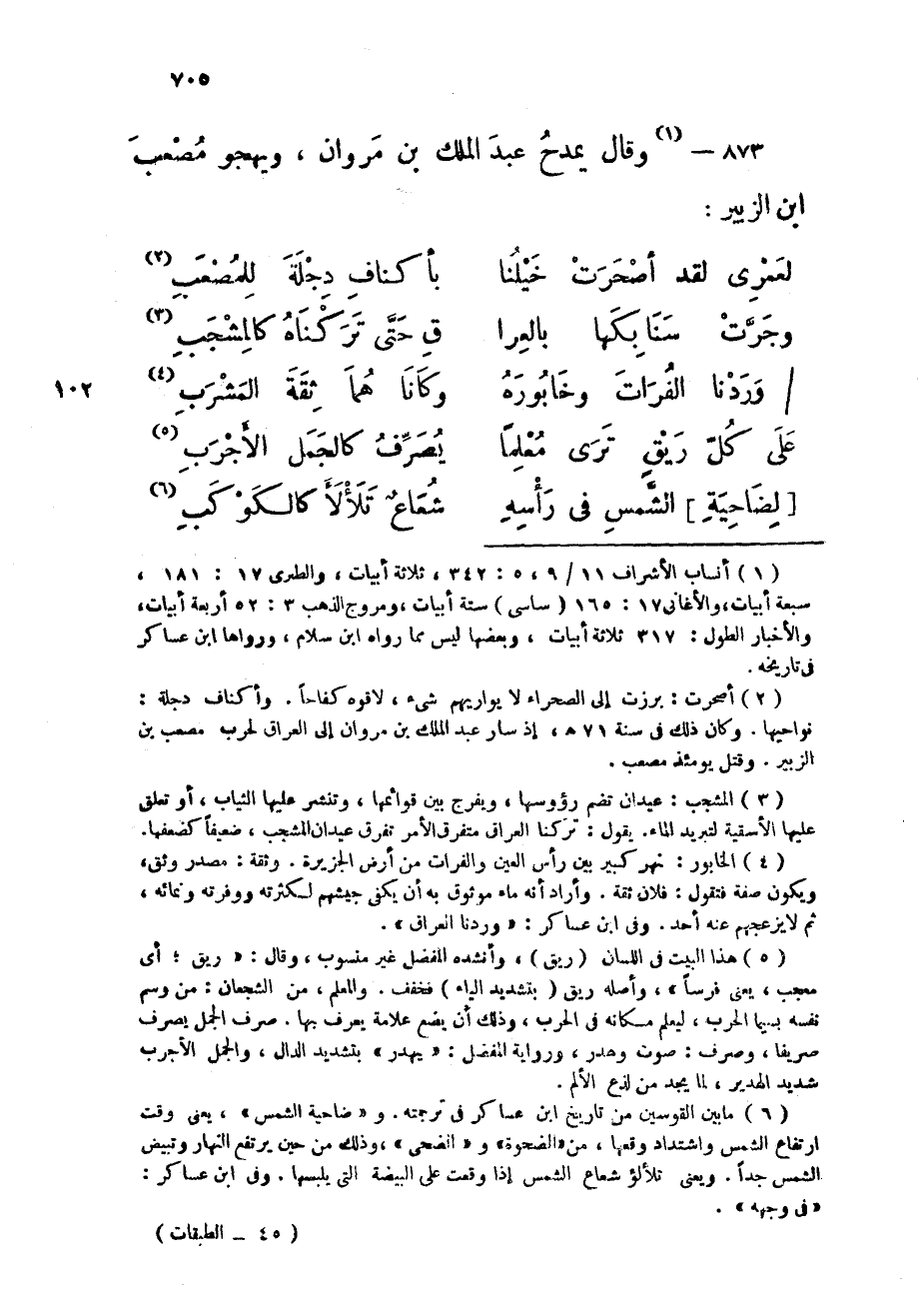 872 - وحدثنى يُونُس النحوى قَالَ استسقى ابْن الرّقاع بنى بَحر من بنى زُهَيْر بن جناب الكلبيين فَلم يسقوه وَهُوَ على مَاء لَهُم يُقَال لَهُ الدمعانة فورد على بنى تغلب مَاء يُقَال لَهُ خَالَة وَفِيه جفر يُقَال لَهُ القنينى فَكَانَت بَنو تغلب قد رعت فِيهِ فَوَقع قَعْب فِي القنينى فَزعم أَنه وجد فِي التُّرَاب الْقَعْب فاقتتلت فِي ذَلِك الجفر بَنو تغلب حَتَّى كَادَت تتفانى ثمَّ اصْطَلحُوا على أَن ملأوه حِجَارَة وقتادا واحتفروا حوله فموضع القنينى من خَالَة مَعْرُوف يُقَال لما حوله القنينيات فَقَالَ ابْن الرّقاع