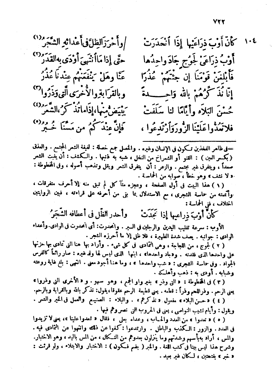 (كَأَن أَوب ذراعيها إِذا انحدرت ... وأحرز الظل فى أعدائه الشّجر)