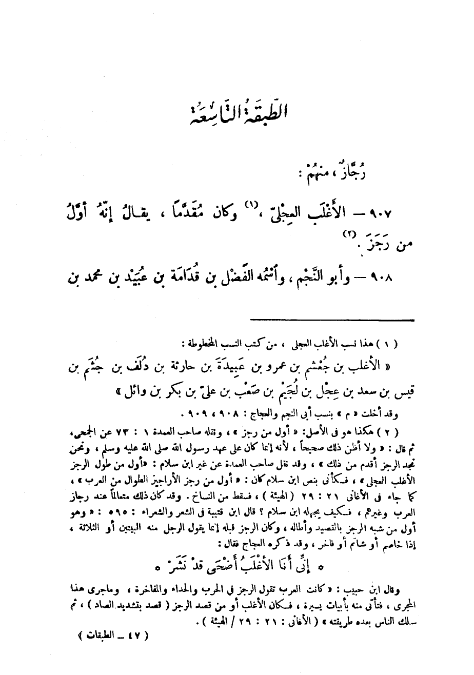 907 - الْأَغْلَب العجلى وَكَانَ مقدما يُقَال إِنَّه أول من رجز