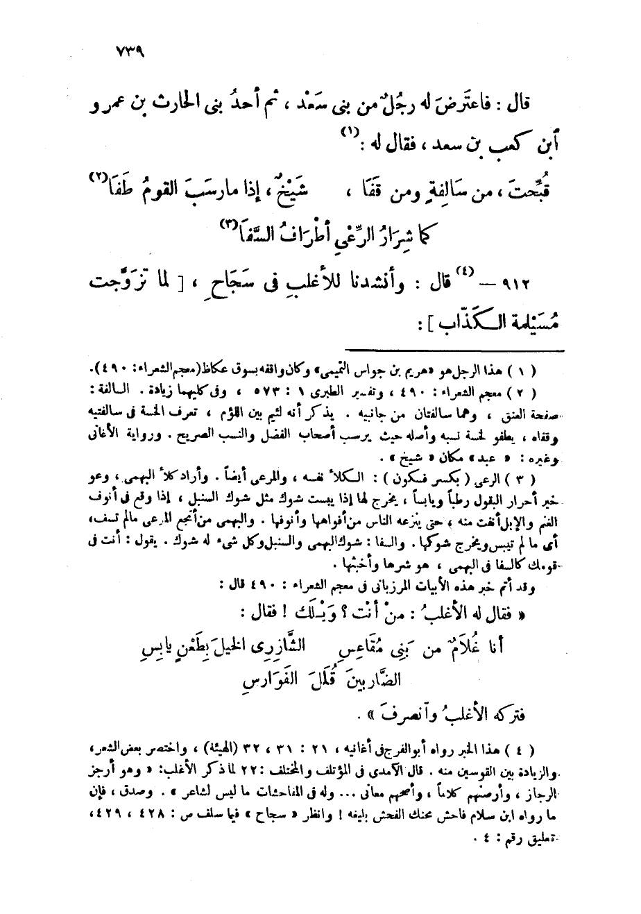 912 - قَالَ وأنشدنا للأغلب فِي سجَاح لما تزوجت مُسَيْلمَة الْكذَّاب