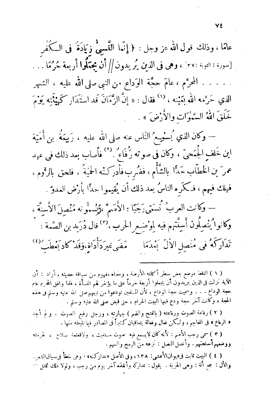 عَاما وَذَلِكَ قَول الله عز وَجل {إِنَّمَا النسيء زِيَادَة فِي الْكفْر} وهى فى الَّذين يُرِيدُونَ أَن يجْعَلُوا أَرْبَعَة حرما ...