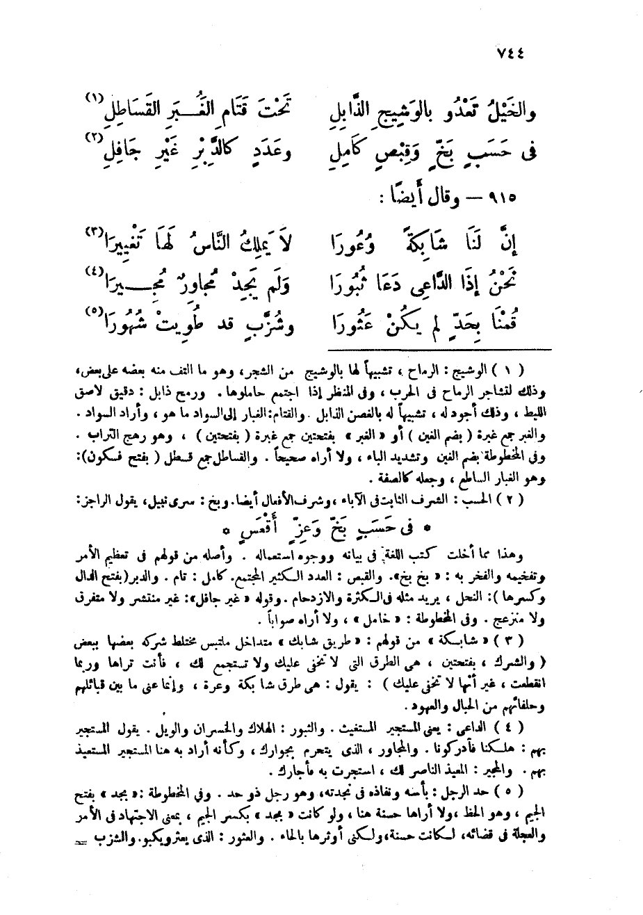 (فى حسب بخ وقبص كَامِل ... وَعدد كالدبر غير جافل)