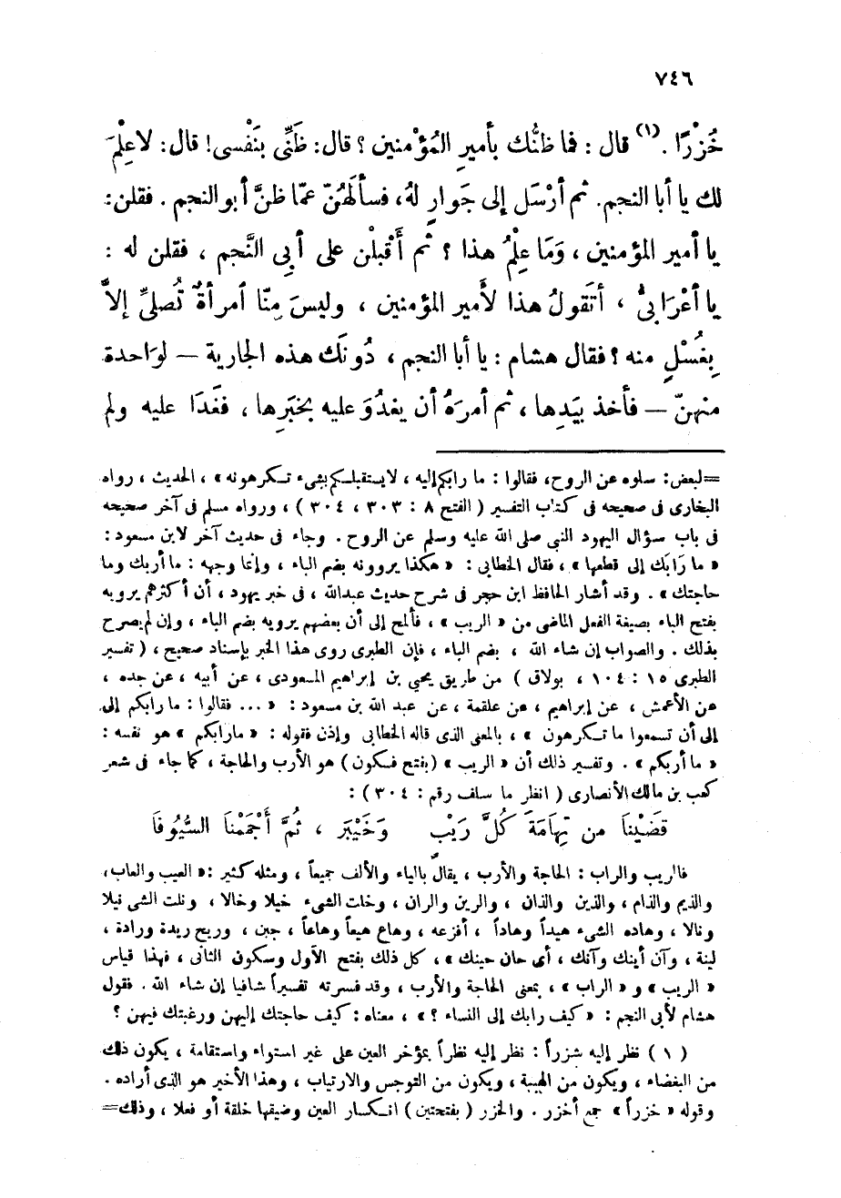 خزرا قَالَ فَمَا ظَنك بأمير الْمُؤمنِينَ قَالَ ظَنِّي بنفسى قَالَ لَا علم لَك يَا أَبَا النَّجْم ثمَّ أرسل إِلَى جوَار لَهُ فسألهن عَمَّا ظن أَبُو النَّجْم فَقُلْنَ يَا أَمِير الْمُؤمنِينَ وَمَا علم هَذَا ثمَّ أقبلن على أبي النَّجْم فَقُلْنَ لَهُ يَا أَعْرَابِي أَتَقول هَذَا لأمير الْمُؤمنِينَ وَلَيْسَ منا امْرَأَة تصلى إِلَّا بِغسْل مِنْهُ فَقَالَ هِشَام يَا أَبَا النَّجْم دُونك هَذِه الْجَارِيَة لوَاحِدَة مِنْهُنَّ فَأخذ بِيَدِهَا ثمَّ أمره أَن يَغْدُو عَلَيْهِ بخبرها فغدا عَلَيْهِ وَلم