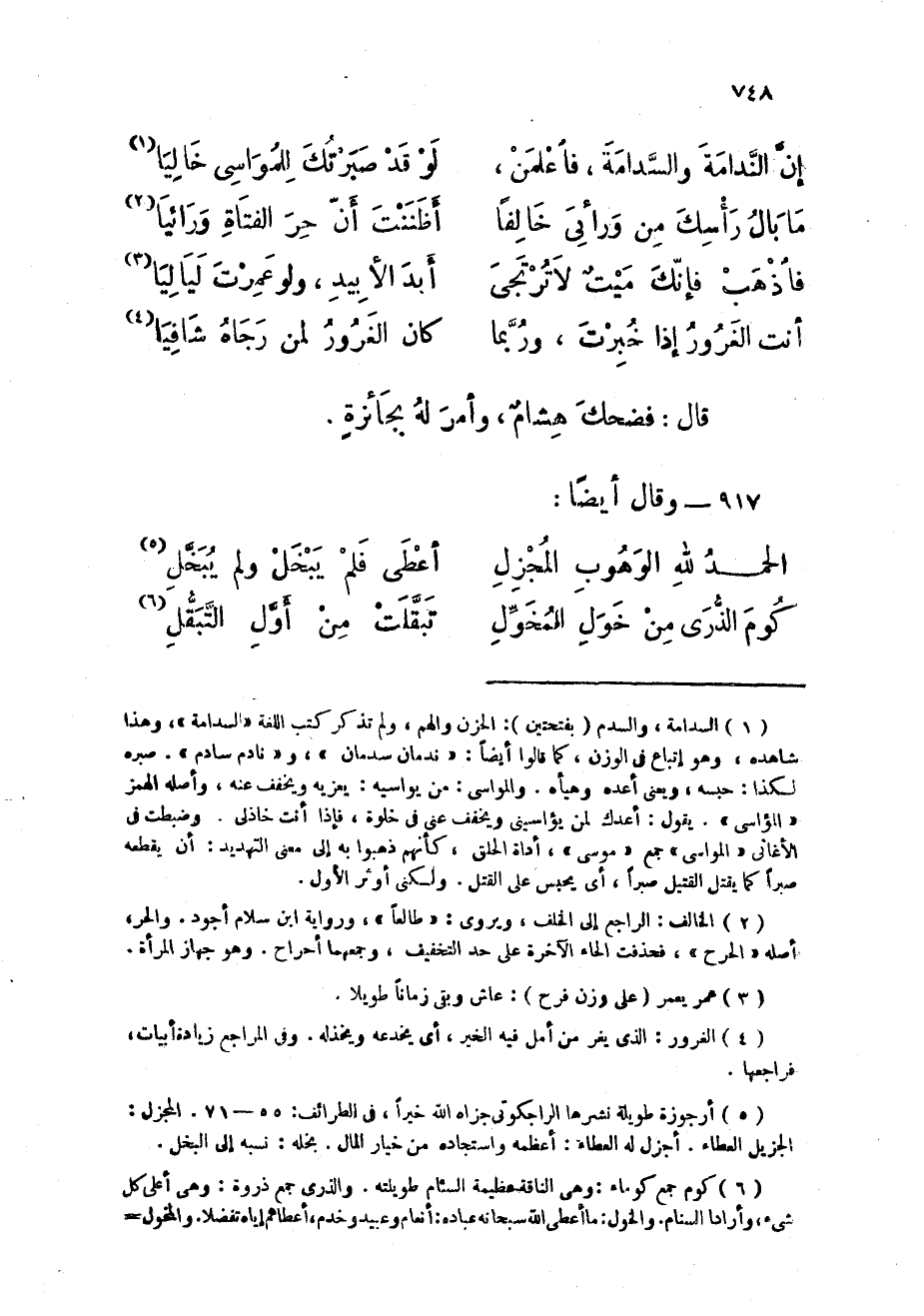 (إِن الندامة والسدامة فاعلمن ... لَو قد صبرتك للمواسى خَالِيا)