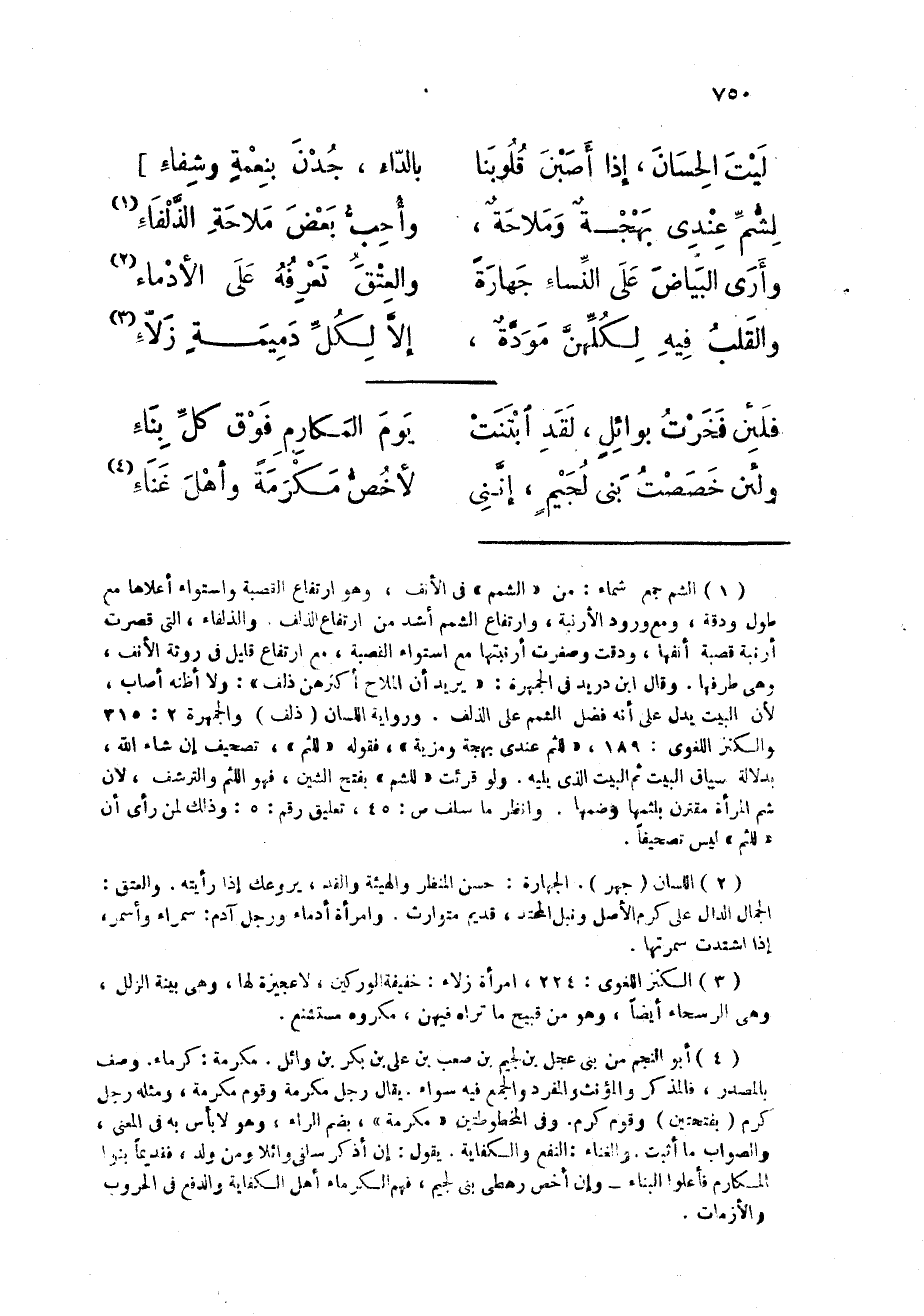(وَلَئِن خصصت بنى لجيم إننى ... لأخص مكرمَة وَأهل غناء)