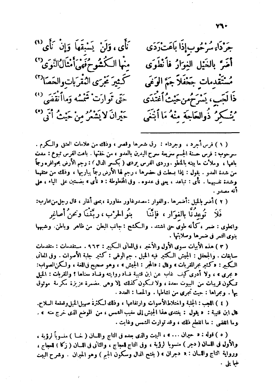 (أضرّ بِالْخَيْلِ الغوار فانطوى ... مِنْهَا الكشوح فهى أَمْثَال النَّوَى)