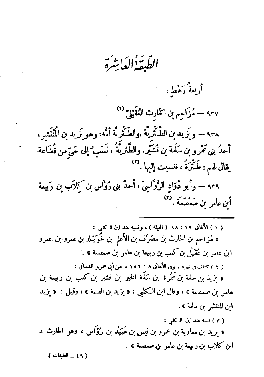 938 - وَيزِيد بن الطثرية والطثرية أمه وَهُوَ يزِيد بن الْمُنْتَشِر أحد بنى عَمْرو بن سَلمَة بن قُشَيْر والطثرية نسب إِلَى حى من قضاعة يُقَال لَهُم ظثرة فنسبت إِلَيْهَا وَأَبُو دواد الرؤاسى أحد بنى رؤاس بن كلاب بن ربيعَة ابْن عَامر بن صعصعة