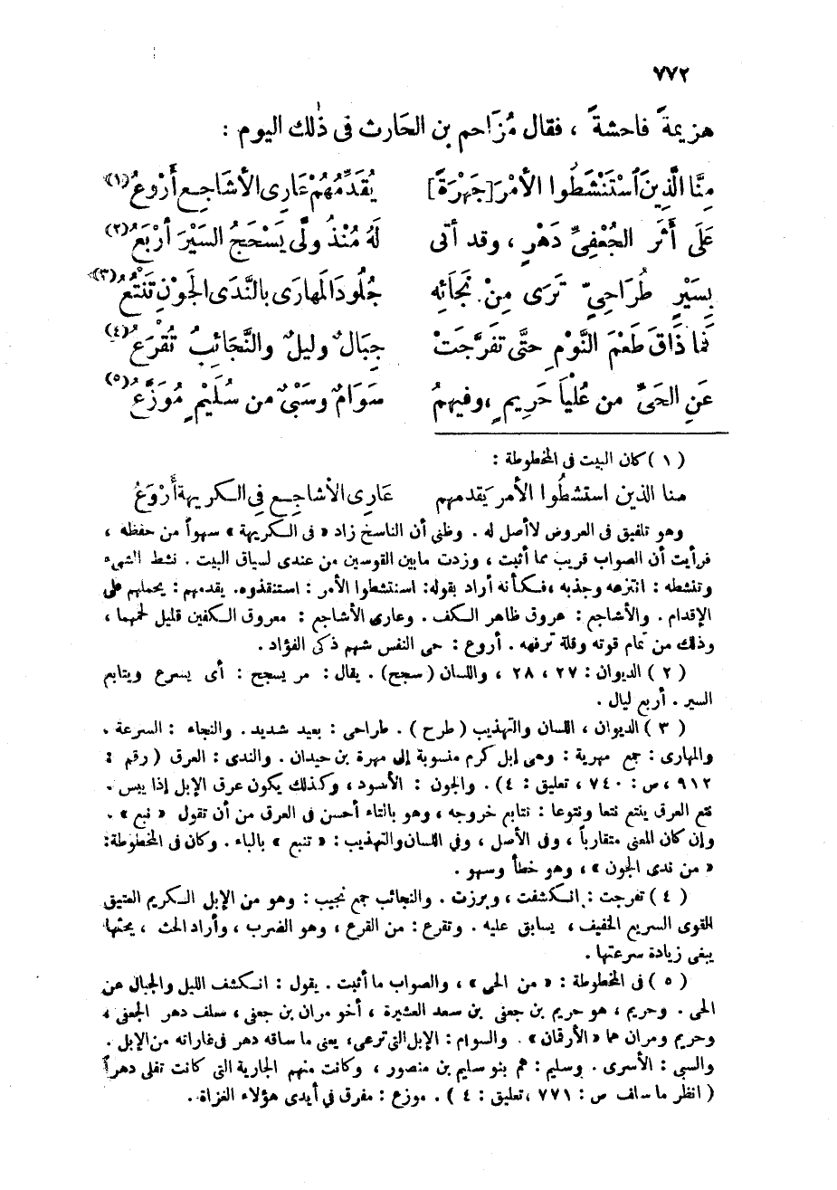 هزيمَة فَاحِشَة فَقَالَ مُزَاحم بن الْحَارِث فِي ذَلِك الْيَوْم