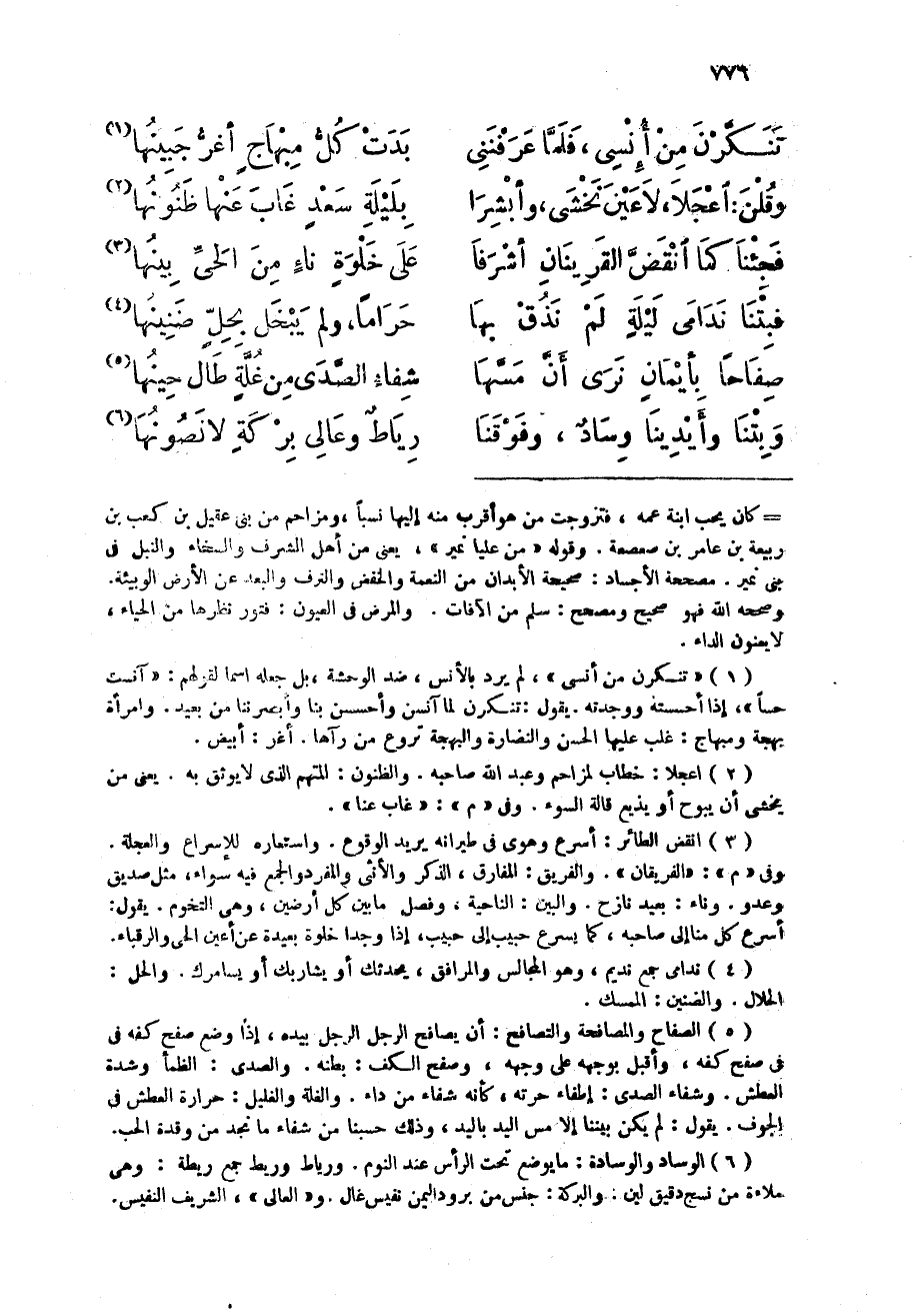 (فبتنا ندامى لَيْلَة لم نذق بهَا ... حَرَامًا وَلم يبخل بِحل ضنينها)