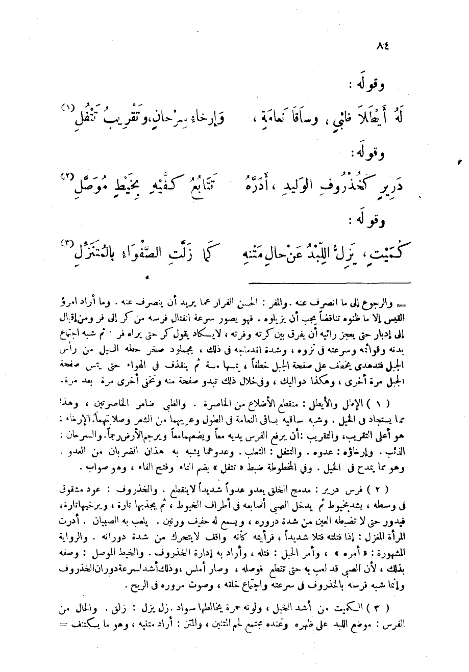 (لَهُ أيطلا ظبى وساقا نعَامَة ... وإرخاء سرحان وتقريب تَتْفُل)