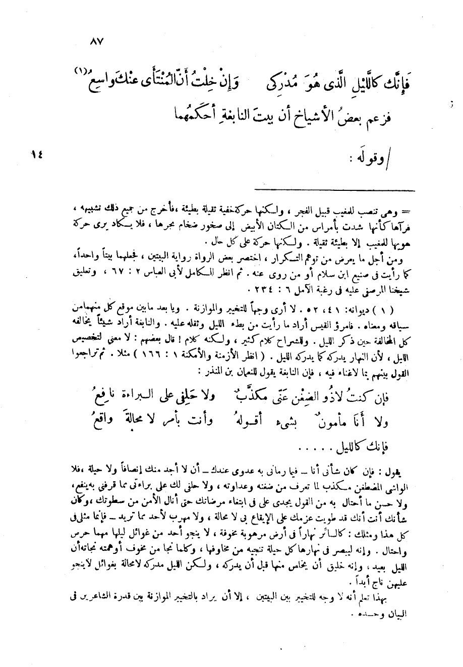 فَزعم بعض الْأَشْيَاخ أَن بَيت النَّابِغَة أحكمها
