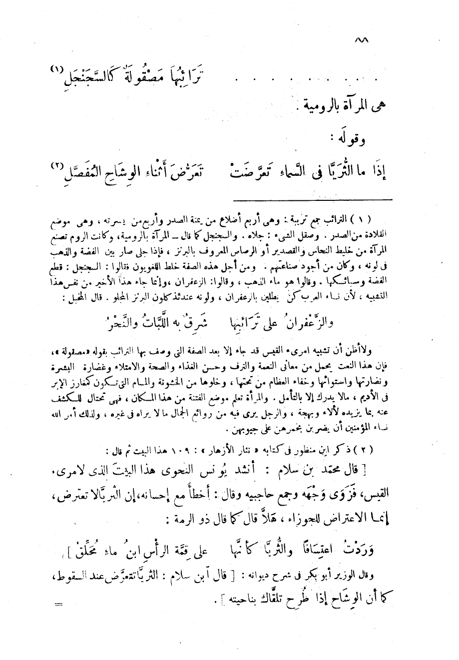 (إِذا مَا الثريا فى السَّمَاء تعرضت ... تعرض أثْنَاء الوشاح الْمفصل)