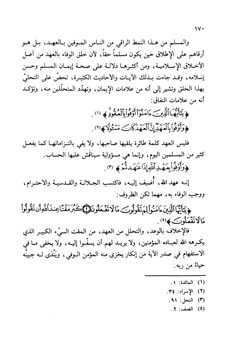 {وَأَوْفُوا بِالْعَهْدِ إِنَّ الْعَهْدَ كَانَ مَسْئُولًا} (¬2).