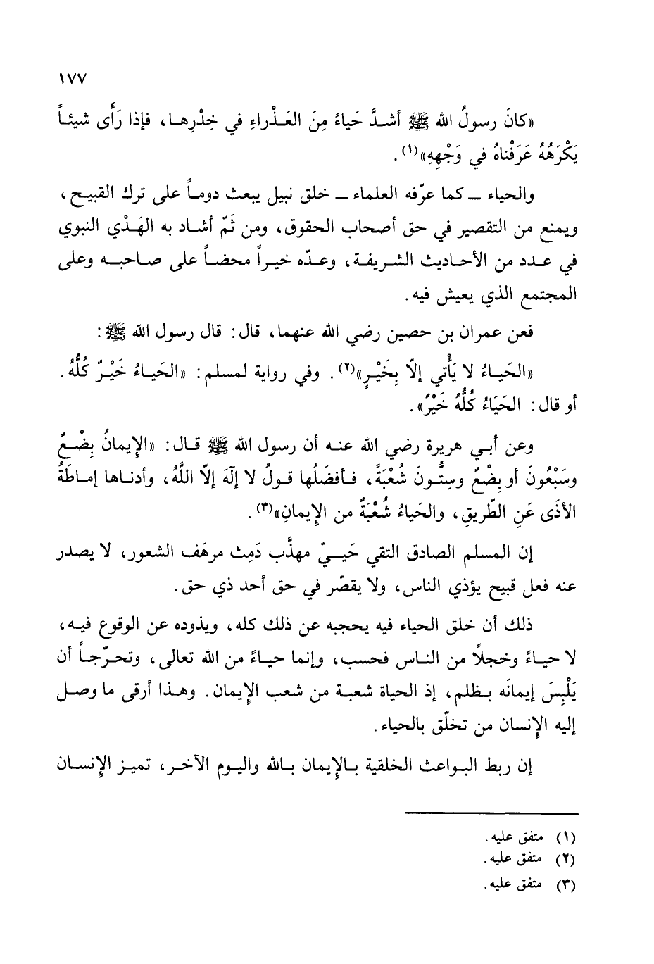 ((الحياء لا يأتي إلا بخير)) (¬2). وفي رواية لمسلم: ((الحياء خير كله. أو قال: الحياء كله خير)).