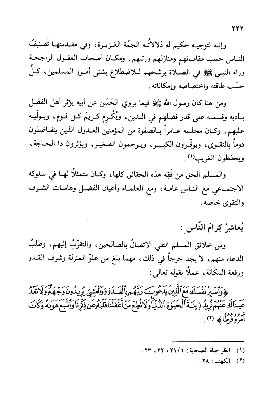 {وَاصْبِرْ نَفْسَكَ مَعَ الَّذِينَ يَدْعُونَ رَبَّهُمْ بِالْغَدَاةِ وَالْعَشِيِّ يُرِيدُونَ وَجْهَهُ وَلَا تَعْدُ عَيْنَاكَ عَنْهُمْ تُرِيدُ زِينَةَ الْحَيَاةِ الدُّنْيَا وَلَا تُطِعْ مَنْ أَغْفَلْنَا قَلْبَهُ عَنْ ذِكْرِنَا وَاتَّبَعَ هَوَاهُ وَكَانَ أَمْرُهُ فُرُطًا (¬2)}.