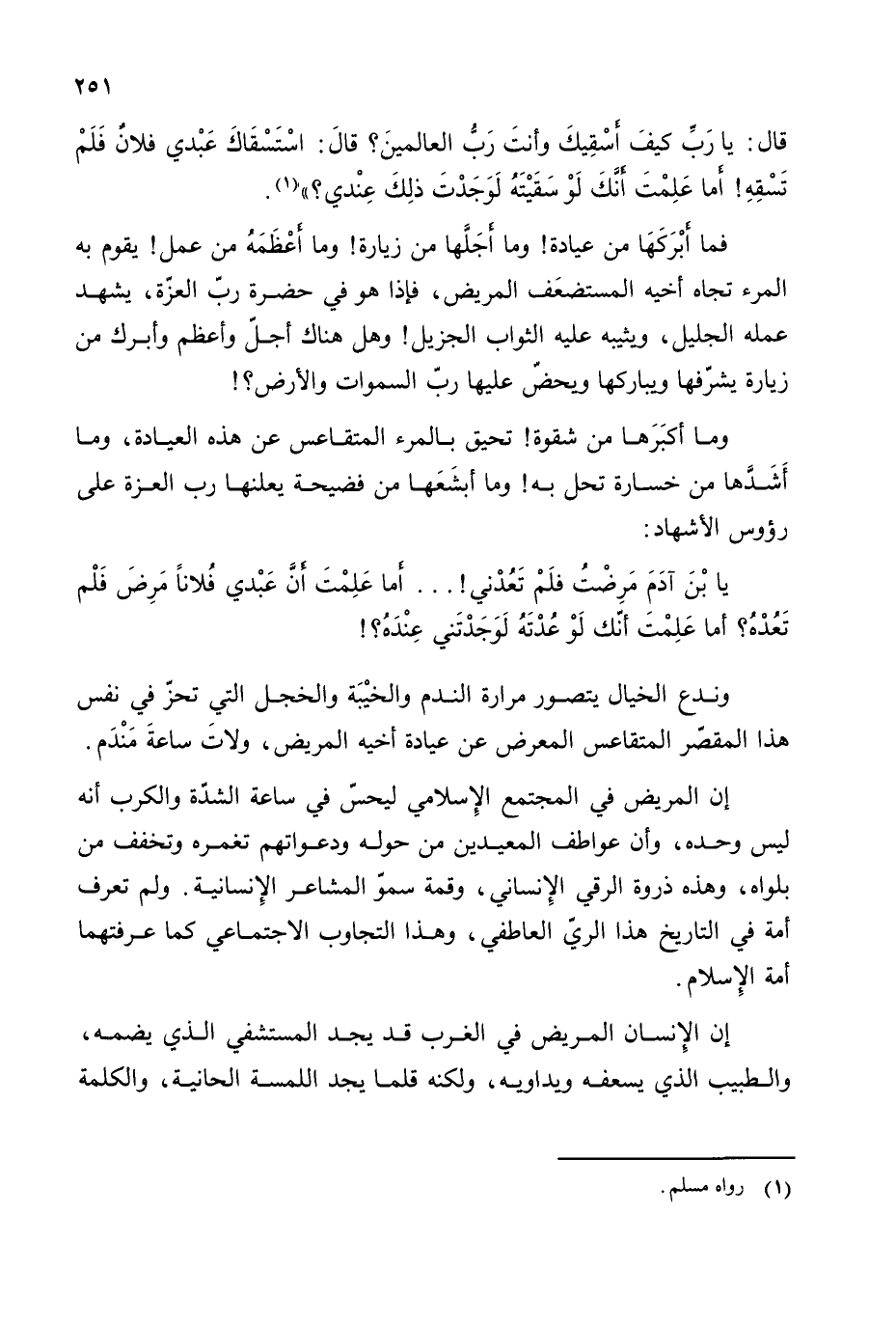 إن المريض في المجتمع الإسلامي ليحس في ساعة الشدة والكرب أنه